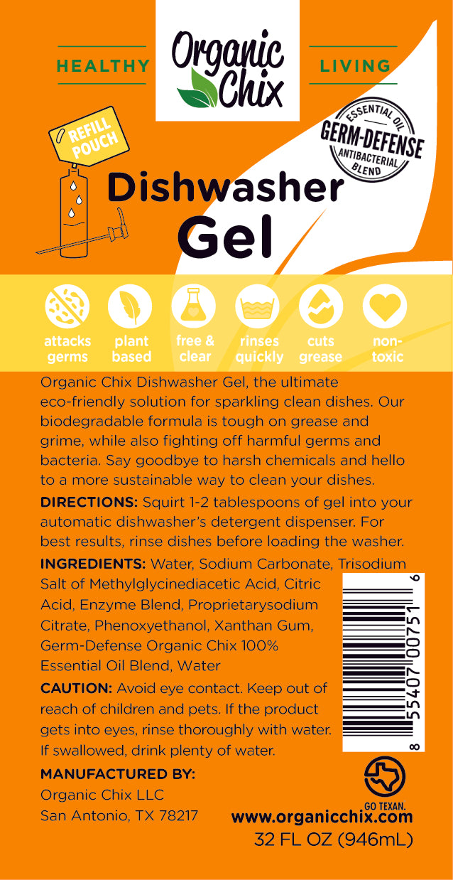 Get spotless dishes—without harsh chemicals. Organic Chix non-toxic dishwasher detergent is a plant-based gel designed to cut through grease, food residue, and buildup while leaving dishes clean and residue-free. This natural dishwasher gel delivers a powerful clean you can trust, without compromising your home or health.Join the movement towards a safer, more sustainable home today!