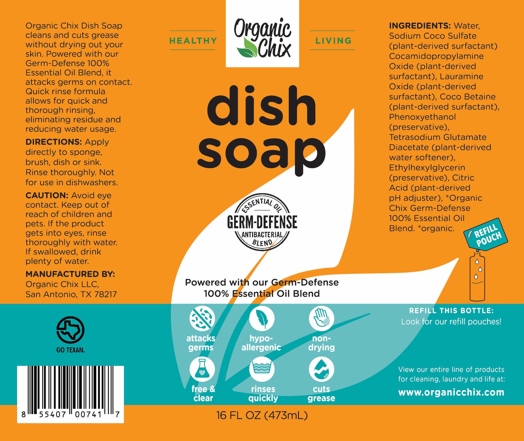 Clean your dishes without harsh chemicals. Organic Chix non-toxic dish soap is a plant-based formula designed to cut through grease, food residue, and buildup—while staying gentle on your hands. Thisnatural dish soap gives you a powerful clean you can trust, without compromising your health or home.
