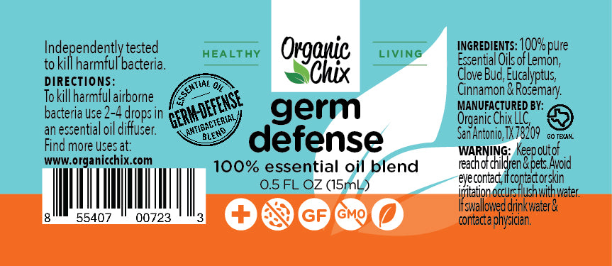 Refresh your space and support your daily wellness routine—naturally. Organic Chix germ-defense essential oil blend is a carefully crafted mix of essential oils designed to help create a clean, uplifting environment. Whether diffused at home or used as part of your routine, this essential oil blend for immunity support helps you feel more balanced and refreshed.